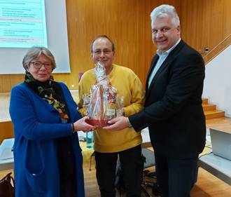 Auch gleich zu Beginn konnte die Vorsitzende der Synode, Jutta Scheele-Schäfer, dem Synodalen Hans Becker, Südkreuzgemeinde, für seinen 40-jährigen Dienst als Synodaler beglückwünschen und überreichte ihm ein Präsent.