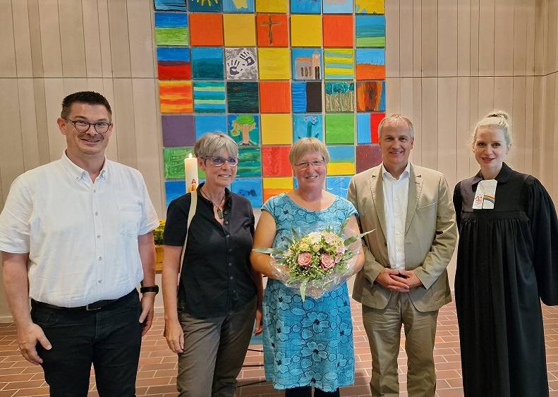 Nach fast 43 Jahren als Erzieherin ist Frau Catharina Huber am 1. Juli in den Ruhestand gegangen. Frau Catharina Huber hatte die Leitung der beiden evangelischen Kindertageseinrichtungen „Shalom Bergwald“ sowie „Regenbogen“ inne. Frau Huber hat sich zudem viele Jahre als Synodale im Stadtkirchenbezirk eingebracht. Zu ihrer Verabschiedung im Gottesdienst am 30. Juni 2023 im Gemeindezentrum Bergwald bedankte sich Verwaltungsdirektor Karl-Heinz Honeck im Namen der Evangelischen Kirche in Karlsruhe für ihren jahrzehntelangen Einsatz im Bereich der Kindertageseinrichtungen.