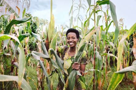 Kleinbäuerin Claudine Hashazinyange (26) bei der Maisernte.