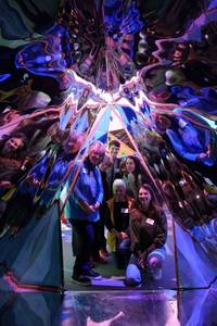 Die Besucher waren dabei eingeladen, selbst Teil des Erlebnisses zu werden: Dafür stand das begehbare Kaleidoskop mit seiner mehrfachen Verspiegelung. Wer ihn betrat, konnte sich achtfach sehen – was ein beliebtes Motiv für Handyfotos und ein „Türöffner“ war, mehr von dem Kunstwerk sehen zu wollen. Die Kuppel selbst lud zum Mitgestalten ein. Wer wollte, konnte am Fächersegen-Stand bunte Sterne falten oder zusammenstecken, um sie mit nach Hause zu nehmen oder eben in die Kuppel zu hängen. So wuchs ein gemeinsames Kunstwerk, das zeigt: Auch du bringst Licht ins Ganze. Zum Mitnehmen gab es noch Kärtchen, deren Botschaft man freirubbeln musste. Dahinter verborgen lagen sechs verschiedene Lichtbotschaften als Give-away nach dem Motto: Lass dich ermutigen!